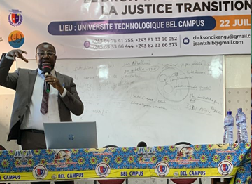 A l’Université de Kinshasa et ailleurs, il assure les enseignements de Droit pénal international, Droit international humanitaire, Procédure pénale et administration de la preuve pénale, Procédure pénale militaire, OCJ/Ordre judiciaire…